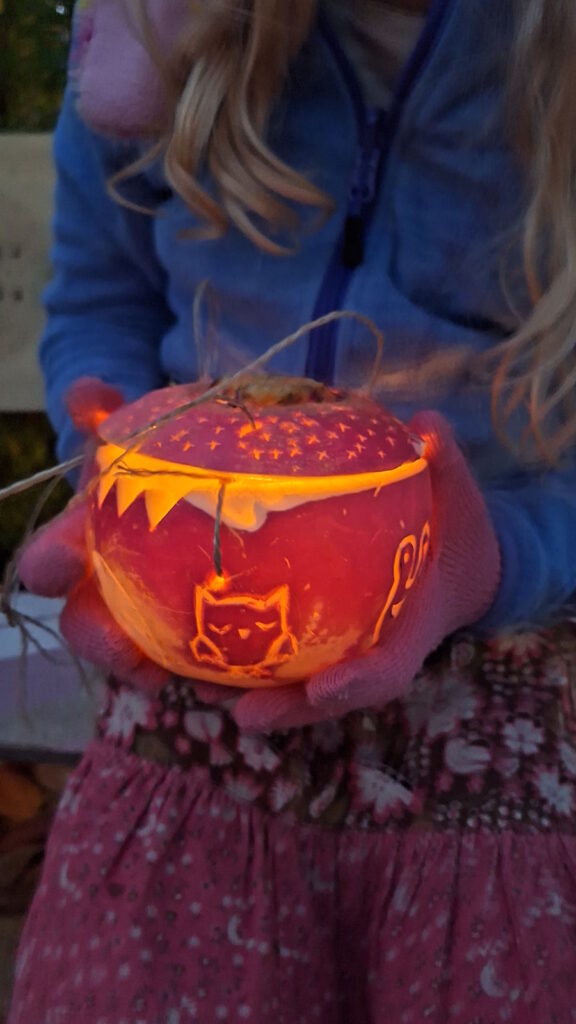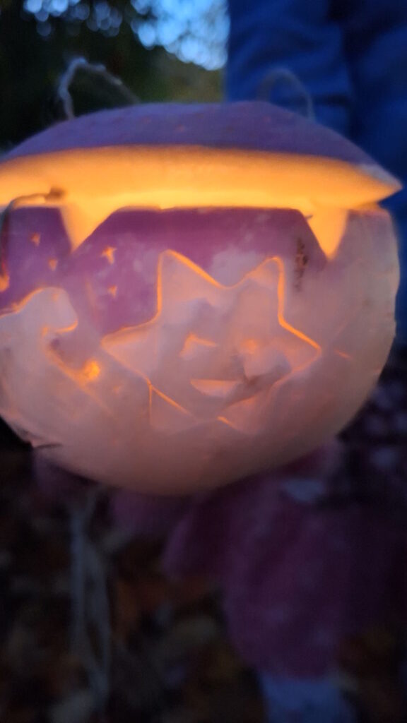 Dieses Lied passte dieses Jahr so wunderbar zum Räbeliechtliumzug, der am 28. Oktober bei sternenklarem Abend stattfand. Wie jedes Jahr besammelten sich alle Kinder vom Kindergarten bis zur 4. Klasse beim Eindunkeln beim Schulhaus um dann mit ihren schön geschnitzten Räben während ca. 1 Stunde durchs Dorf zu laufen. Auf der Route wurden bei 3 Stopps, die von den jeweililgen Familien mit Feuerschalen und vielen schönen Räben dekoriert wurden, Räbeliechtlilieder gesungen. Diese wurden mit der Gitarre sowie vielen Mundharmonikas von der 3./4. Klässler begleitet. Diese Stimmung ist einzigartig, weshalb es sich lohnt, als Eltern oder mit kleineren Kindern dem Umzug zu folgen.